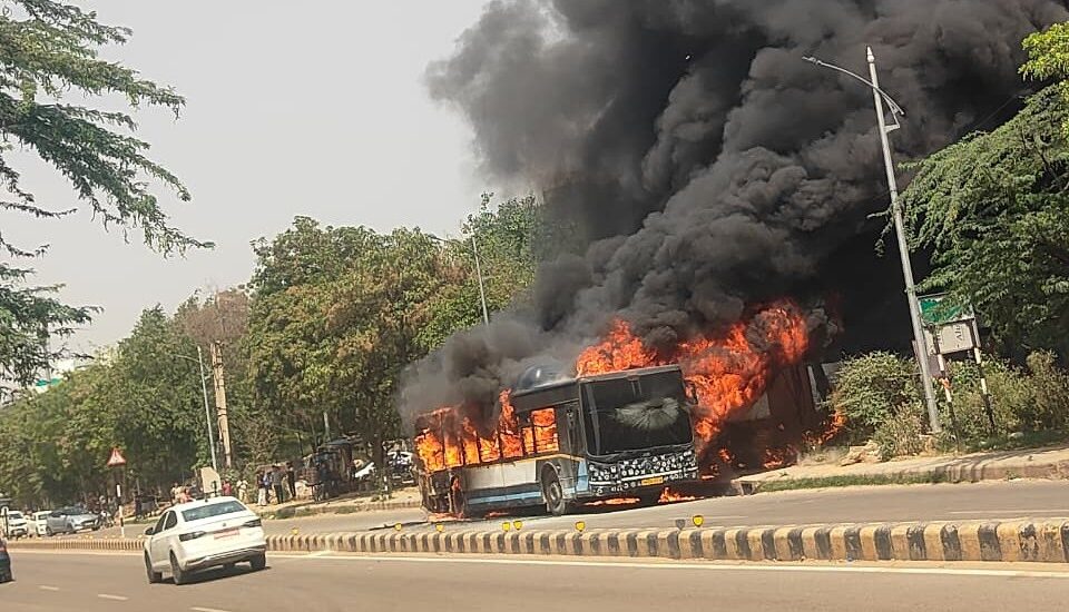 गुरुग्राम में भीषण गर्मी के बीच चलती सिटी CNG बस में लगी आग, यात्रियों में मची अफरा-तफरी